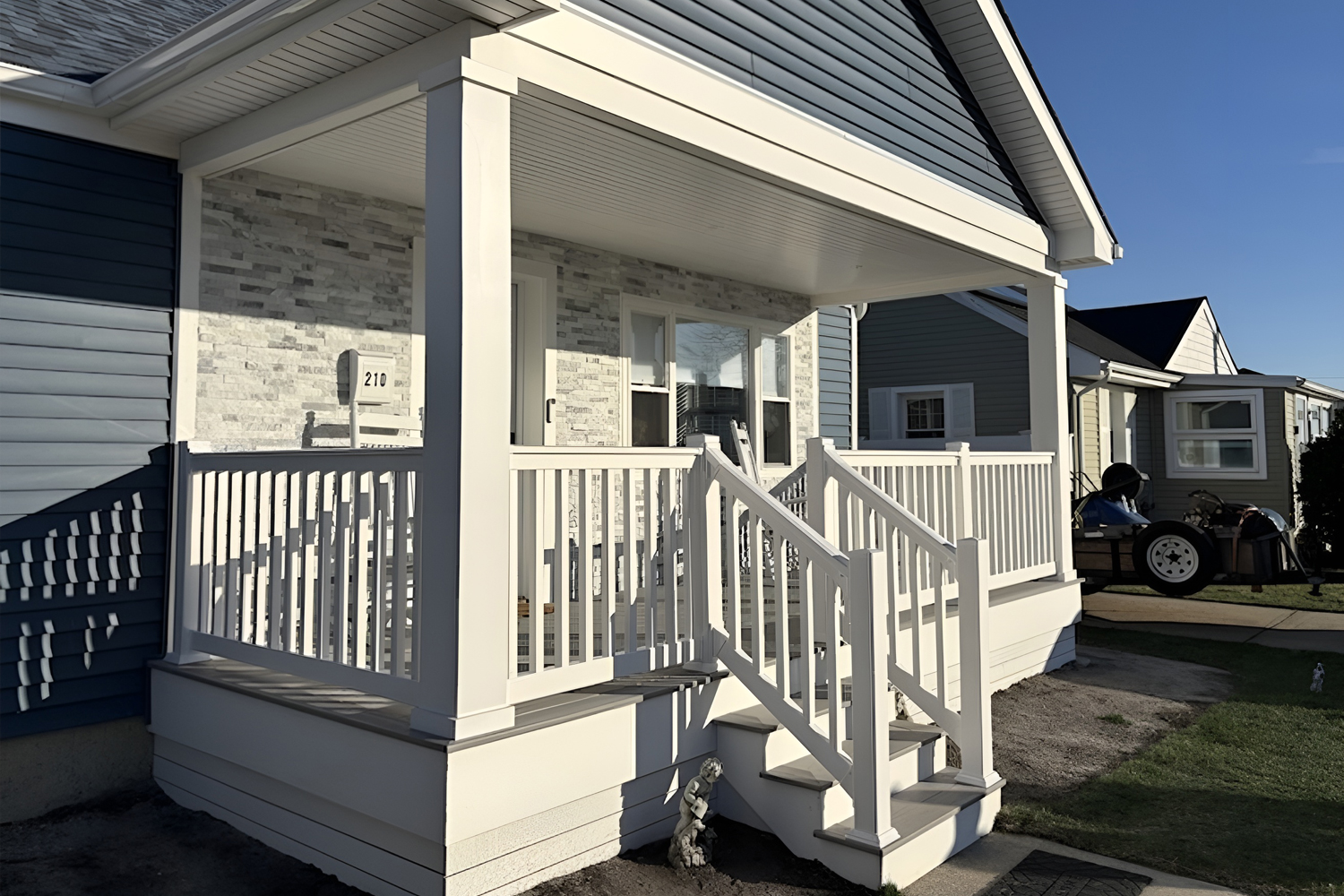 Our team at Coombs Fencing recently completed a professional aluminum railing replacement in Vineland, NJ for Mrs. Pustizzi to help update her front porch. Mrs. Pustizzi was looking