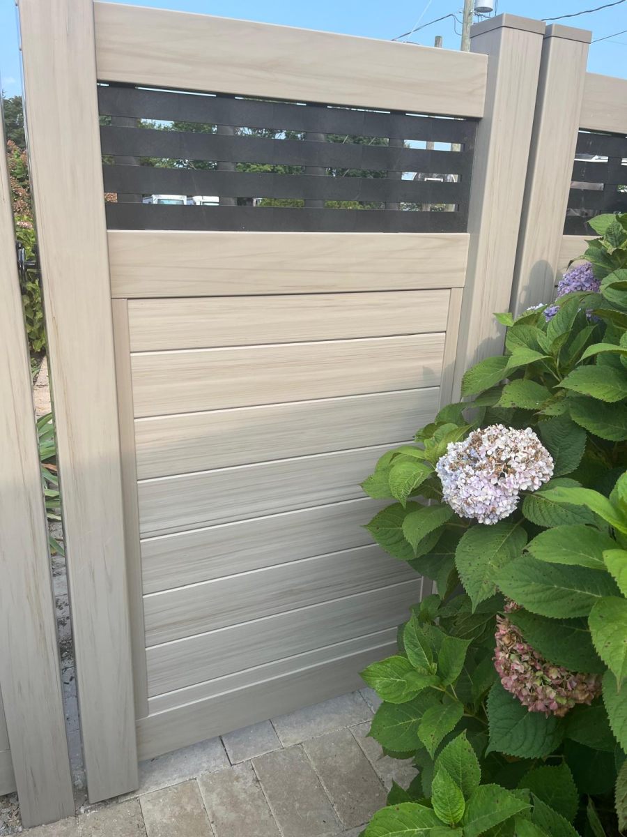We believe that using high quality materials is the most important part of our work. Our wood is locally sourced from suppliers right here in South Jersey. This allows us to keep a close eye on the quality of the lumber from the moment it arrives at our facility until it is installed in your yard. For this project, the Mesquite finish provides a beautiful neutral tone that looks great next to the house siding and the green plants in the garden. As seen in the project photos, the fence serves as a beautiful backdrop for the property’s landscaping, including the large hydrangea bushes and red roses.