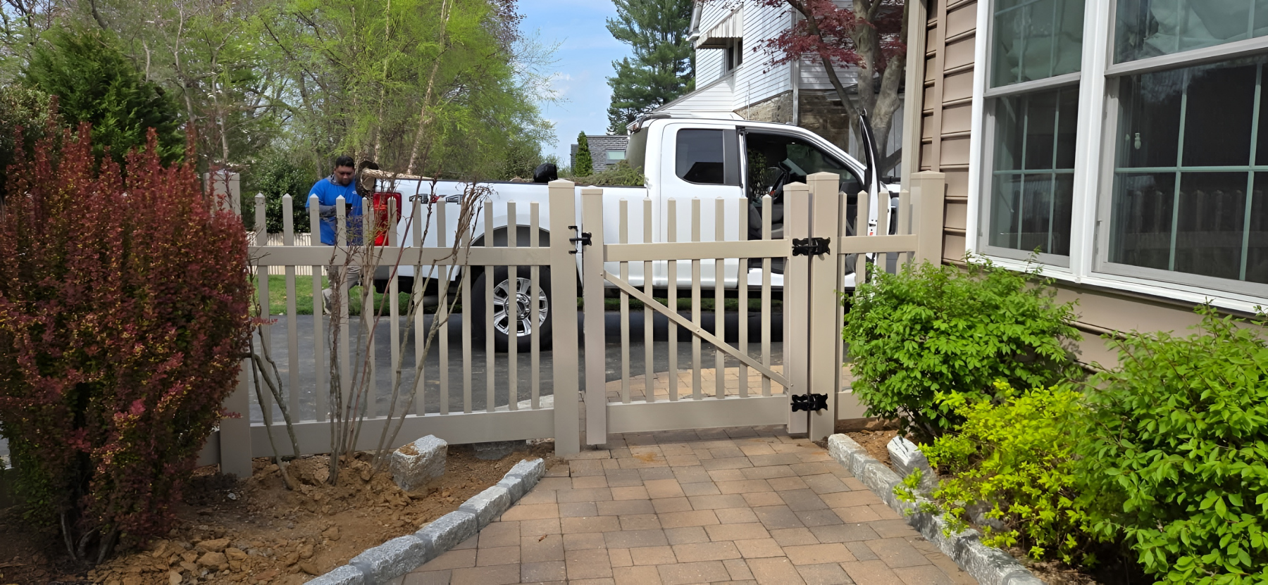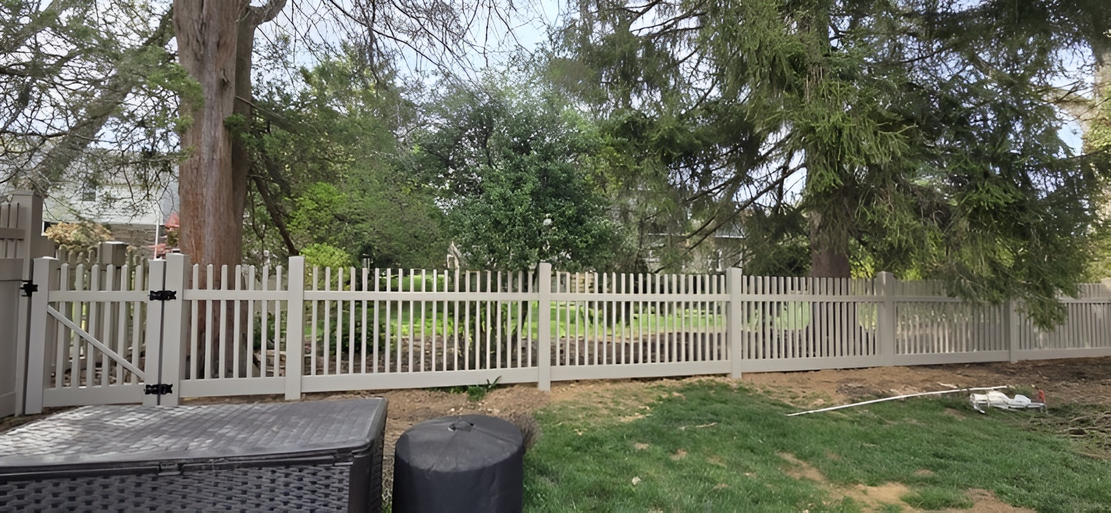 In the more public-facing areas of the property, we utilized a 4-foot adobe spaced picket design. This choice offers a welcoming and friendly appearance that defines property lines without creating a closed-off atmosphere. The spacing allows for excellent airflow and visibility, which is helpful for maintaining a neighborly connection while ensuring pets and children stay safely within the yard. The adobe color is a sophisticated alternative to traditional white, as it blends naturally with the surrounding landscape and hides common garden debris and dust much better than lighter shades. This section demonstrates how a shorter fence can still make a significant architectural statement.