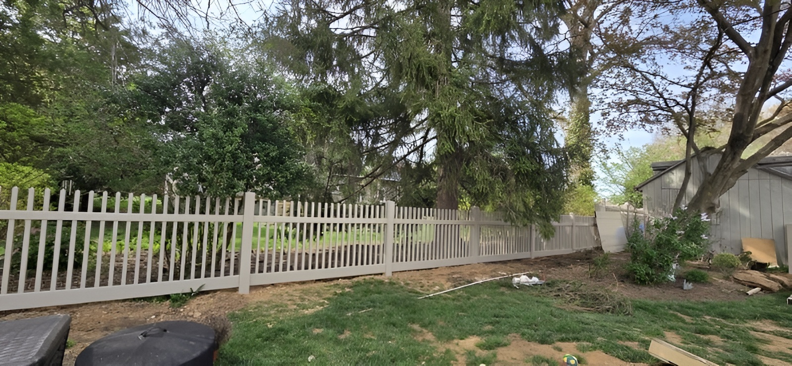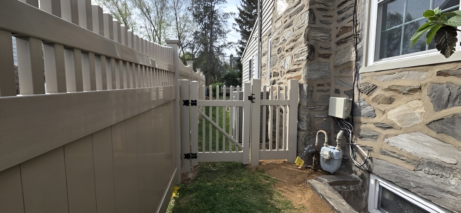 The project involved a strategic approach to different areas of the yard to balance open aesthetics with total seclusion. We installed a combination of heights and styles to meet the specific needs of Mr. Tumolo. This included a 4-foot adobe spaced picket section and a 6-foot adobe privacy section, both finished in a warm adobe tone that integrates beautifully with the natural environment and stone masonry found on the house. The transformation is immediate, turning a standard backyard into a polished environment that will stand up to the local climate for decades without the need for recurring repairs.